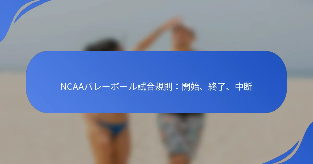 NCAAバレーボールの試合規則は、試合の開始、終了、および中断の管理に関する重要な手続きを概説しています。これらのガイドラインは、選手と審判の両方にとってスムーズで公正な体験を確保し、試合前のミーティングやウォームアップから、結果の記録やタイムアウトや怪我の処理に至るまで、すべてをカバーしています。これらの規則を理解することは、ゲームの整合性を維持し、選手の安全を確保するために重要です。