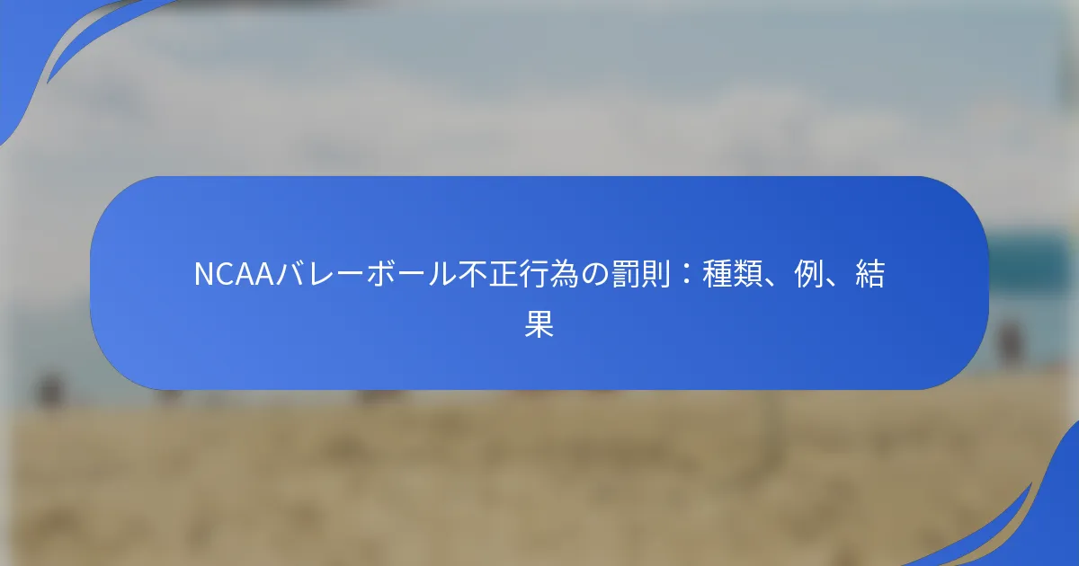 NCAAバレーボールの不正行為に対する罰則には、罰金、出場停止、失格、及び保護観察措置が含まれます。これらの罰則は、スポーツの誠実性を維持し、選手やチーム間の公正なプレーを確保するために設計されています。