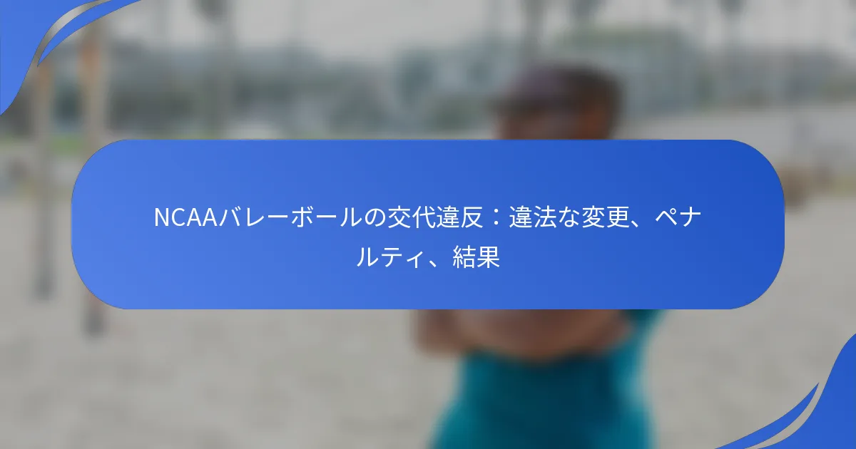 NCAAバレーボールにおける不正行為の罰則は、選手やチームに大きな影響を与え、士気、パフォーマンス、将来の機会に影響を及ぼします。結果には、試合の出場停止、奨学金の喪失、個人およびチームの評判への長期的な損害が含まれる可能性があります。