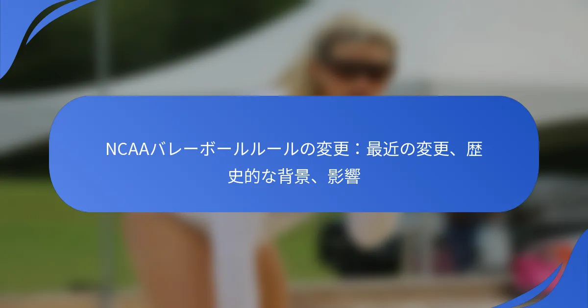 NCAAバレーボールの最近のルール変更は、ゲームプレイの向上、選手の安全性の改善、そしてスポーツの進化するダイナミクスへの適応を目的としています。これらの変更には、交代ルールやビデオレビューのプロトコルの調整が含まれており、競技の公正さとアスリートの福祉を確保するための歴史的な進展を反映しています。これらの変更を理解することは、コーチ、選手、関係者がチーム戦略やリクルート活動における影響を把握するために重要です。